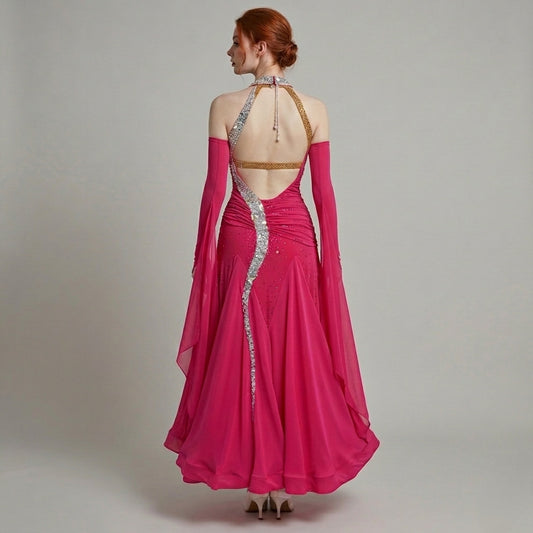 Regular price $389.00 USDRegular priceUnit price / per$0.00 USDSale price $389.00 USDByCharme Deep Pink Feather Ballroom Competition Dress - BC-0068