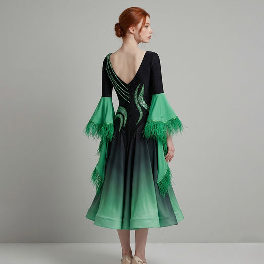ByCharme Black Feather Ballroom Competition Dress - BC-0069