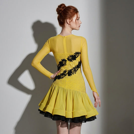 Regular price $194.00 USDRegular priceUnit price / perSale price $194.00 USDByCharme Yellow Black Exquisite Edition Latin Salsa Competition Dress - BCL-0212