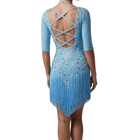 Regular price $329.00 USDRegular priceUnit price / per$349.00 USDSale price $329.00 USDSaleByCharme Sky Blue Silver Fringes Latin Salsa Competition Dress - BCL-0006