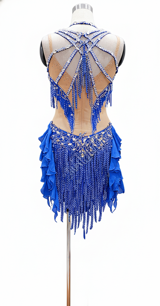 Regular price $399.00 USDRegular priceUnit price / per$429.00 USDSale price $399.00 USDSaleByCharme Blue Silver Fringes Latin Salsa Competition Dress - BCL-0149