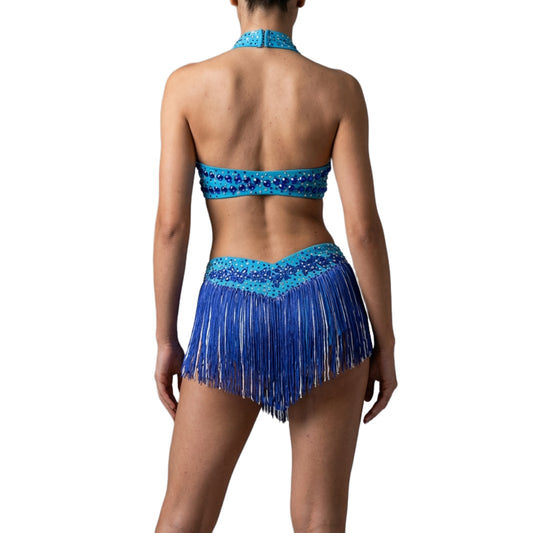 Regular price $184.00 USDRegular priceUnit price / per$194.00 USDSale price $184.00 USDSaleByCharme Blue White Silver Fringes Latin Salsa Competition Dress - BCL-0164