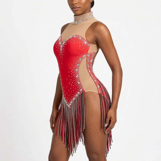 Regular price $234.00 USDRegular priceUnit price / perSale price $234.00 USDByCharme Bright Red Fringes Latin Salsa Competition Dress - BCL-0142