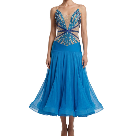 Regular price $255.00 USDRegular priceUnit price / per$0.00 USDSale price $255.00 USDByCharme Deep Sky Blue Chiffon Ballroom Competition Dress - BC-0008