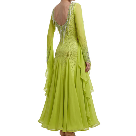 ByCharme Green Yellow Fringes Ballroom Competition Dress - BC-0017