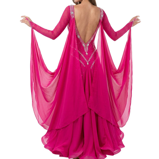 Regular price $255.00 USDRegular priceUnit price / per$0.00 USDSale price $255.00 USDByCharme Magenta Chiffon Ballroom Competition Dress - BC-0023
