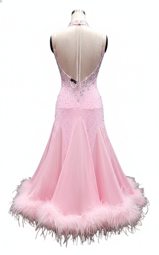 ByCharme Light Pink Feather Ballroom Competition Dress - BC-0049