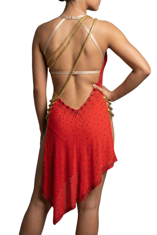 Regular price $449.00 USDRegular priceUnit price / per$489.00 USDSale price $449.00 USDSaleByCharme Orange Red Gold Chiffon Latin Salsa Competition Dress - BCL-0088