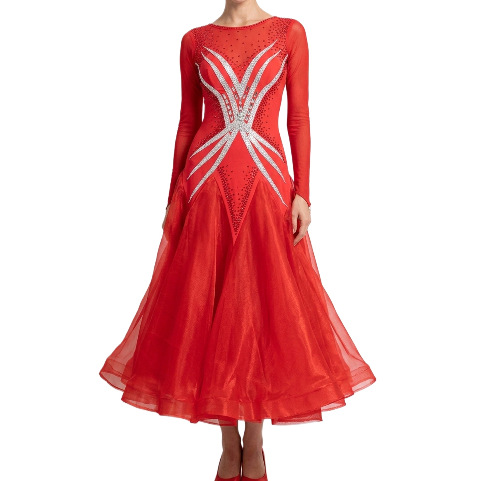 ByCharme Bright Red Chiffon Ballroom Competition Dress - BC-0009