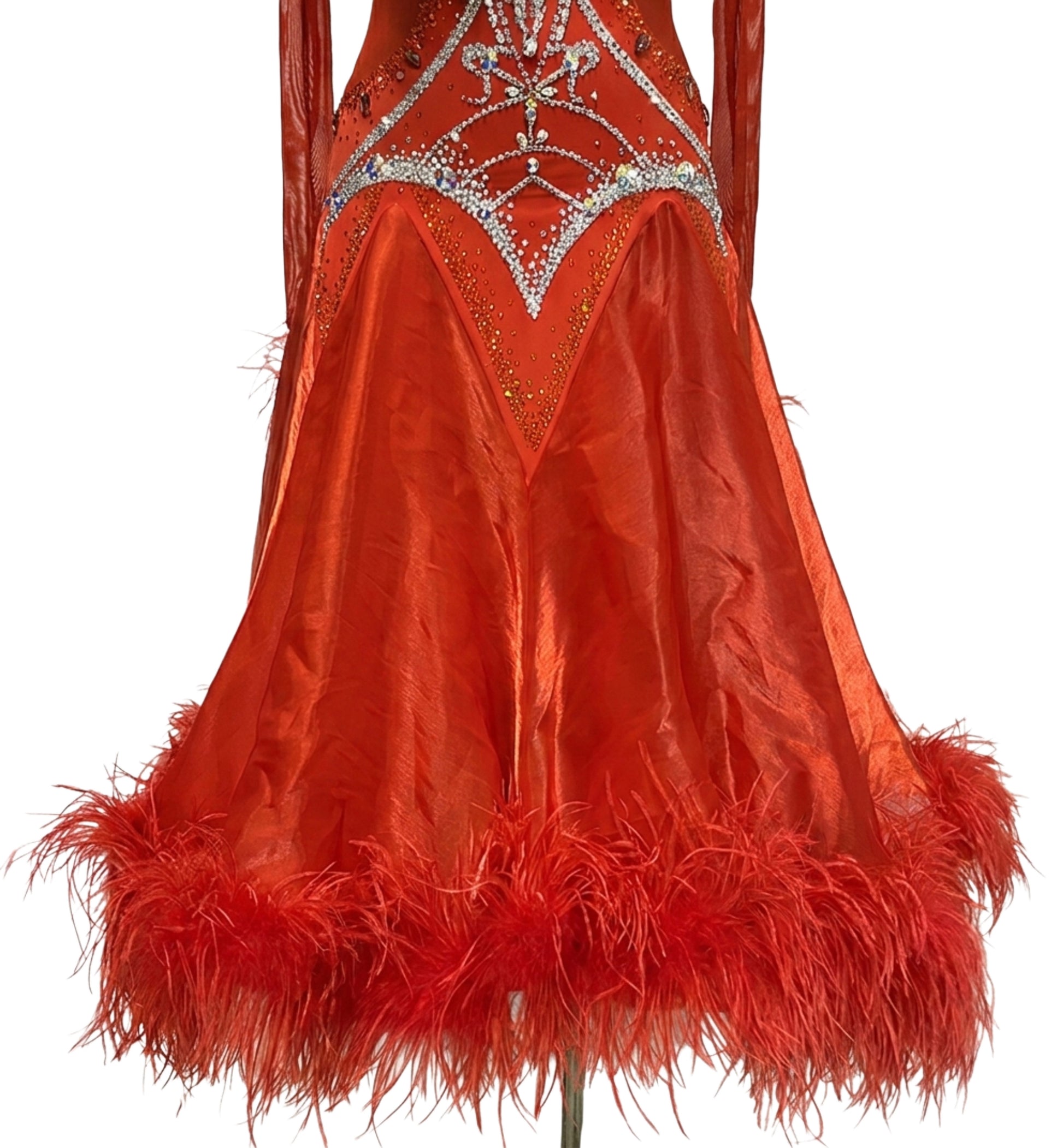 ByCharme Bright Red Feather Ballroom Competition Dress - BC-0028