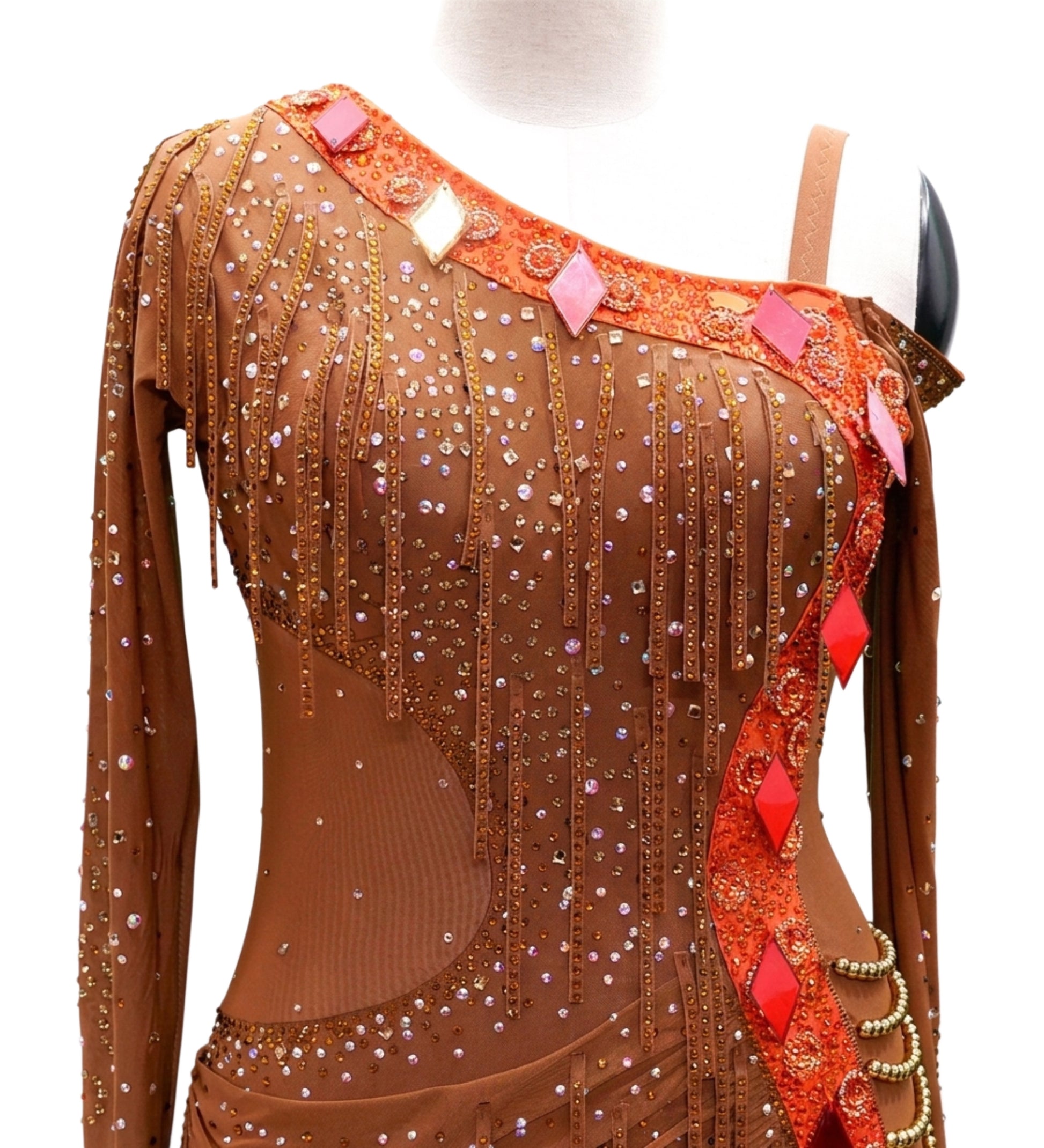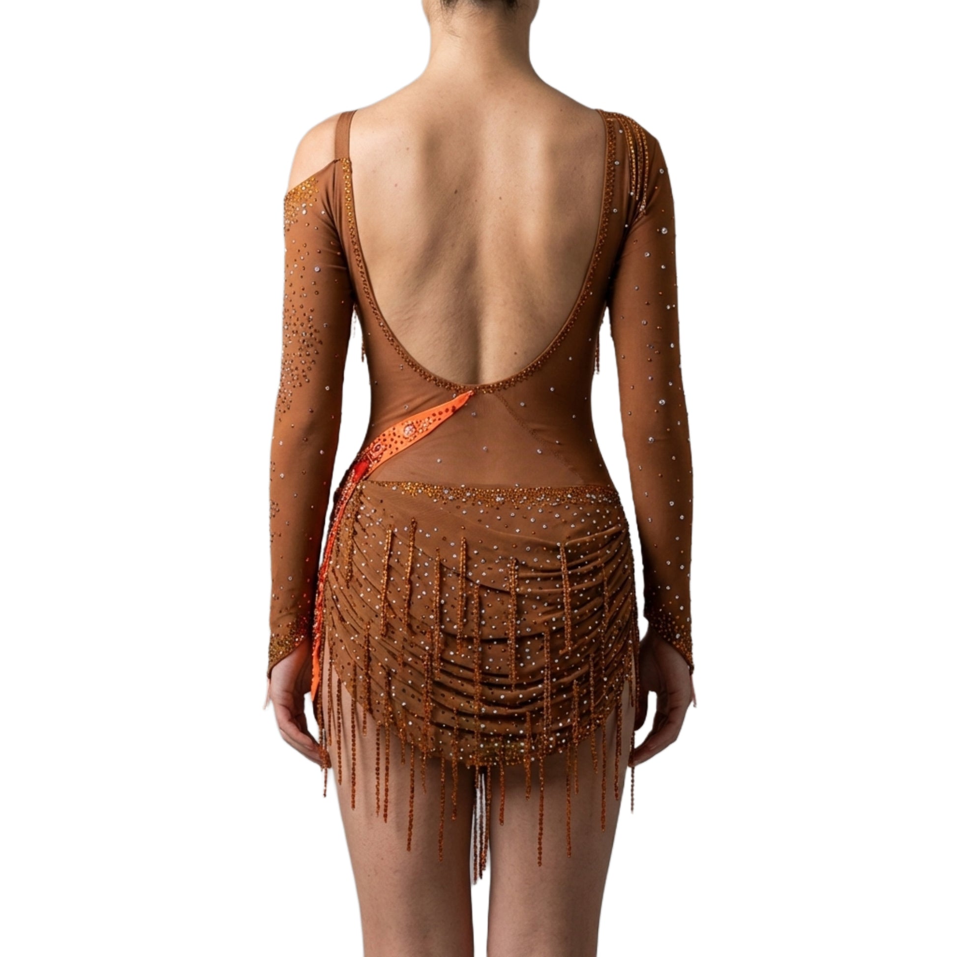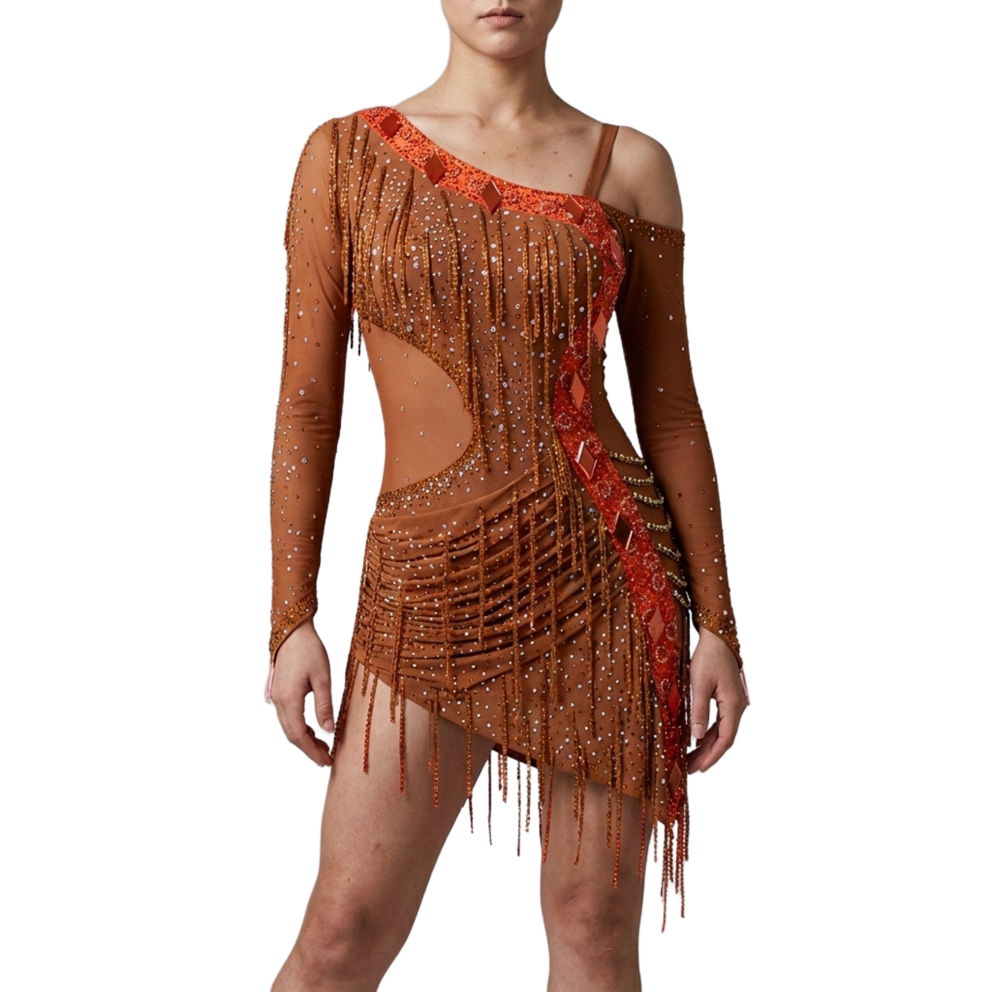 ByCharme Brown Orange Red Fringes Latin Salsa Competition Dress - BCL-0106