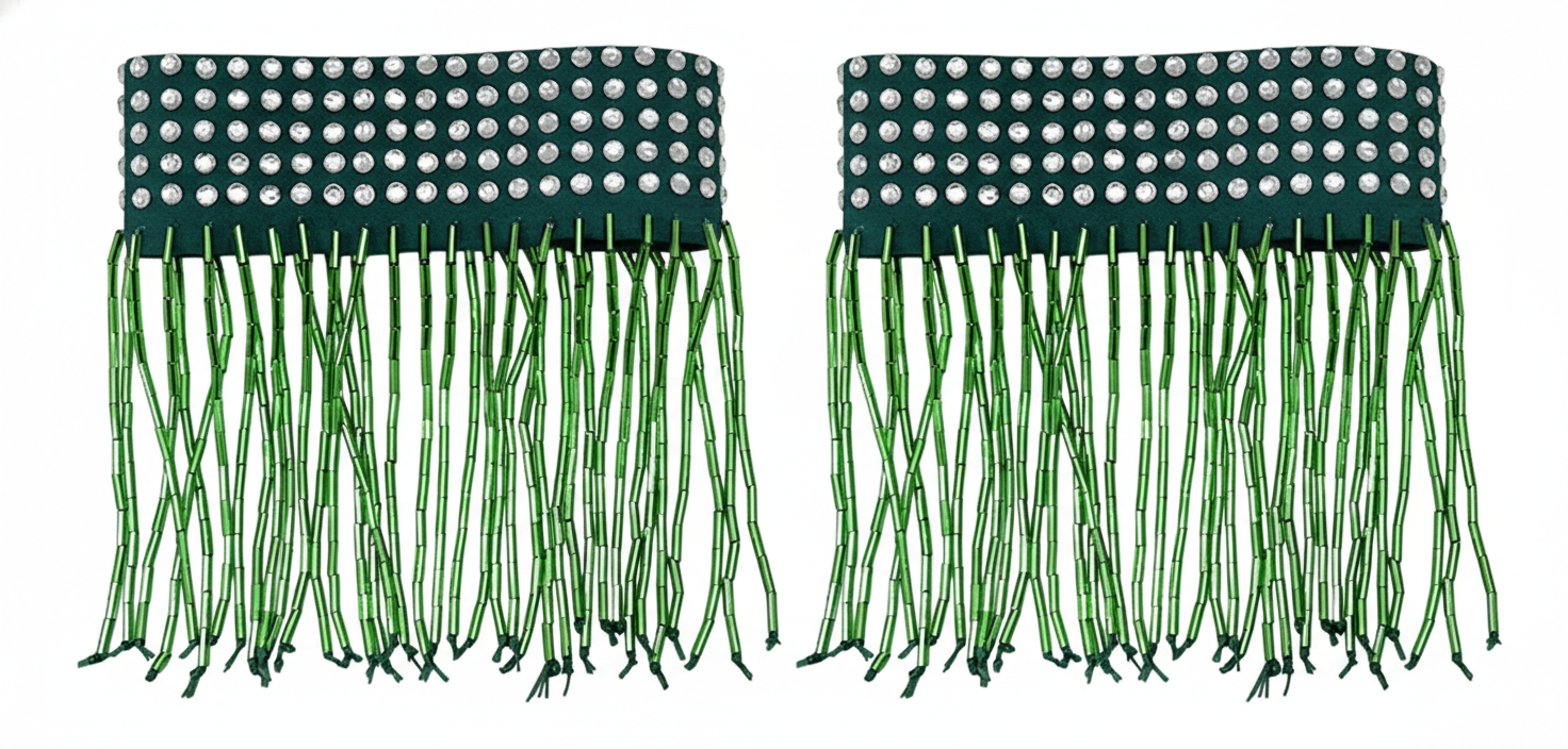 Embellishment: Hand-applied rhinestones, stones, and beaded fringes to create stunning sparkle and dynamic movement on stage.