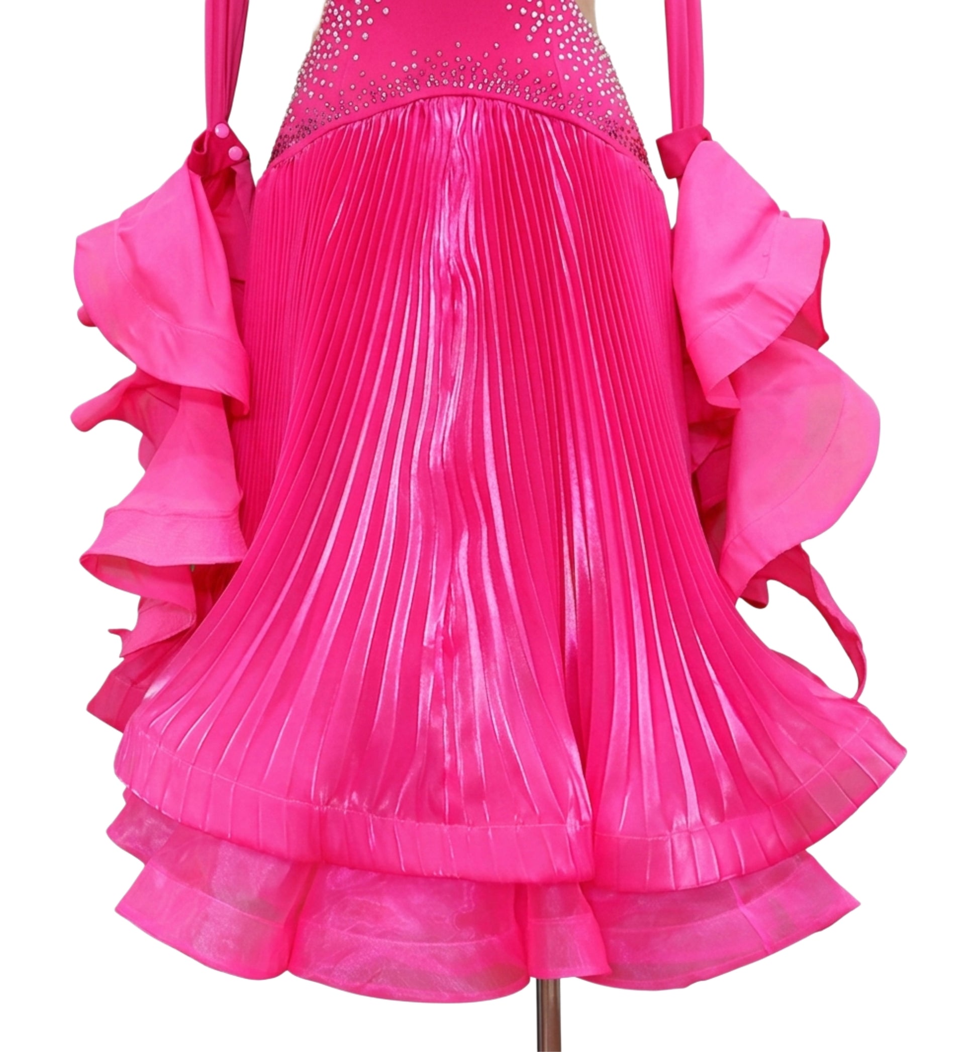 ByCharme Neon Pink Silk Satin Ballroom Competition Dress - BC-0061