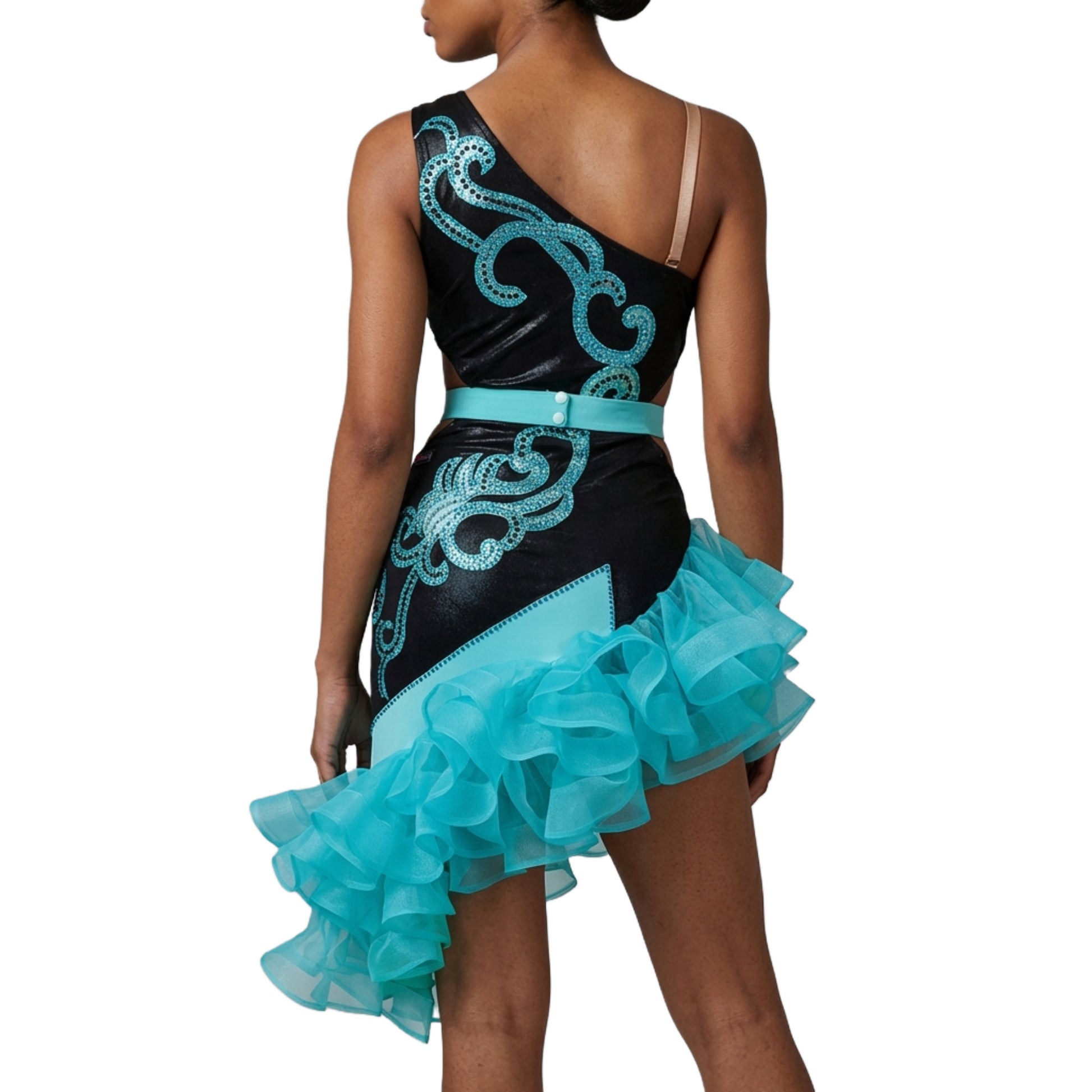 ByCharme Black Cyan Blue Fringes Latin Salsa Competition Dress - BCL-0188
