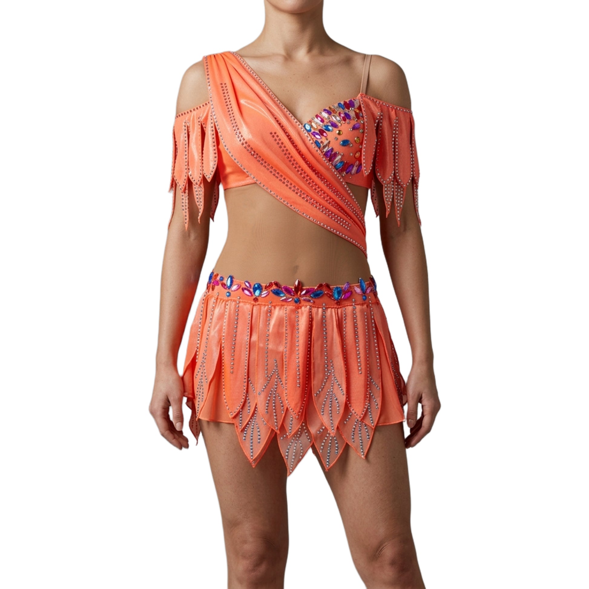 ByCharme Orange Light Brown Latin Salsa Competition Dress - BCL-0140