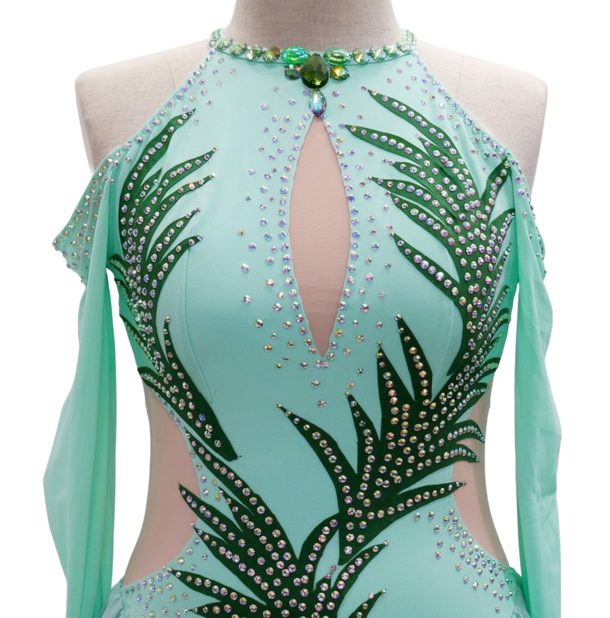 ByCharme Aquamarine Dark Green Tan Latin Salsa Competition Dress - BCL-0157